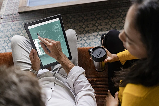 ビジネス用途の各種ファイルをペン入力で校正。狭い場所では本体を縦表示にしてビデオ通話などなど、タブレットモードでは普通のノートPC以上に汎用性が高いのが魅力。