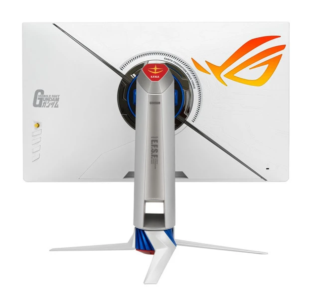 遅延を低減させ、ゲームに最適化された27インチモニター。背面にはガンダムや連邦軍のロゴを配置。シールドをイメージしたデザインも◎