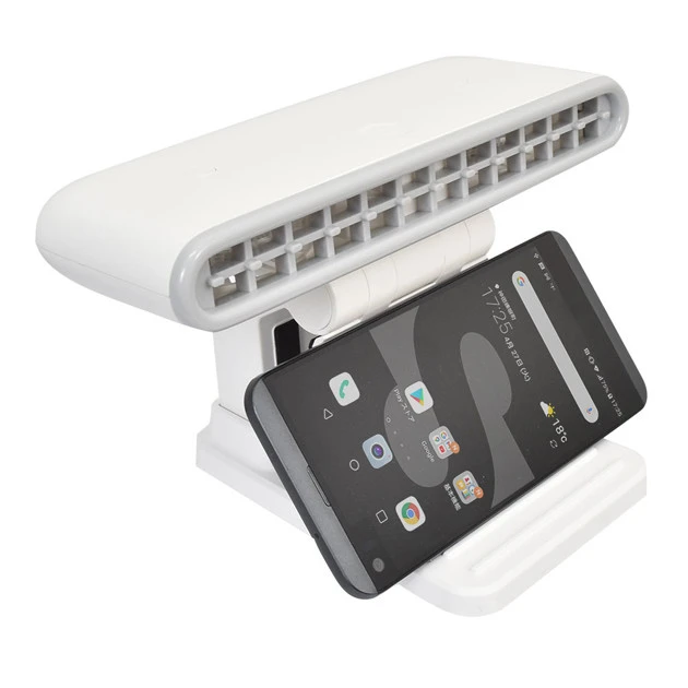 夏場のお仕事はキーボード周辺が汗でベトベトに......。ディスプレイ部分に設置して手元へ送風。ノートパソコンなら本体の冷却効果もあり、スマホスタンドとしても活用可能だ。