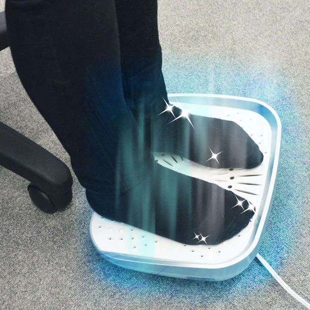 まさかの足のみ送風マシン! 本体内にファンが内蔵され、本体に足を置くだけでスイッチオンの簡単仕様。ゲリラ豪雨で湿った足の乾燥や冬場のムレムレ状態の足にもぜひ!