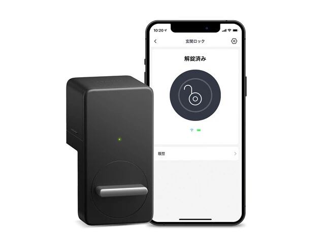 スマホをはじめとする端末でドアの解錠ができるアイテム。ほとんどのサムターン式のドアロックに取り付けることが可能で、これまでのスマートロックのような工事は不要。超お手軽に利用開始できるのが魅力だ。専用アプリ、さらに各種音声AIからの操作にも対応していますよ!
