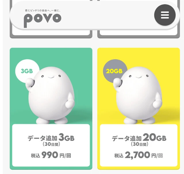 「データ追加3GB(990円/30日間)」、「データ無制限(1回330円/24時間)」などのトッピングを選び、自分に合った料金プランを作ることができる。指定されたコンビニや飲食店での支払いにau PAYを使うことでギガがもらえる「#ギガ活」を活用すれば、月0円の利用も可能ですよ!