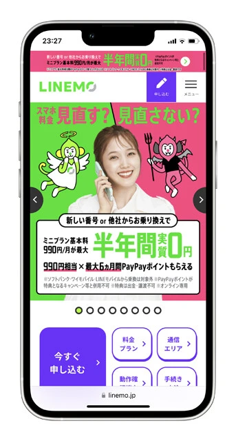 MNPの場合、「ミニプラン」は最大半年間毎月990円相当分のPayPayポイント進呈、「スマホプラン(月額2728円/20GB)」は最大1万4000円相当分のPayPayポイント進呈という強力なキャンペーンを開催中。LINEのメッセージや通話、ビデオ通話でギガを消費しないのも優秀すぎ!