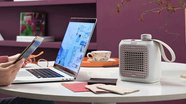 オフィスや自宅で「ちょっと冷えるなぁ」というときに活用したいコンパクトヒーター。本体は幅15㎝、奥行き11㎝でデスクにも置けるサイズ。さらに静音性を高め、仕事や勉強中でも気にならないほどの動作音なのが特徴。