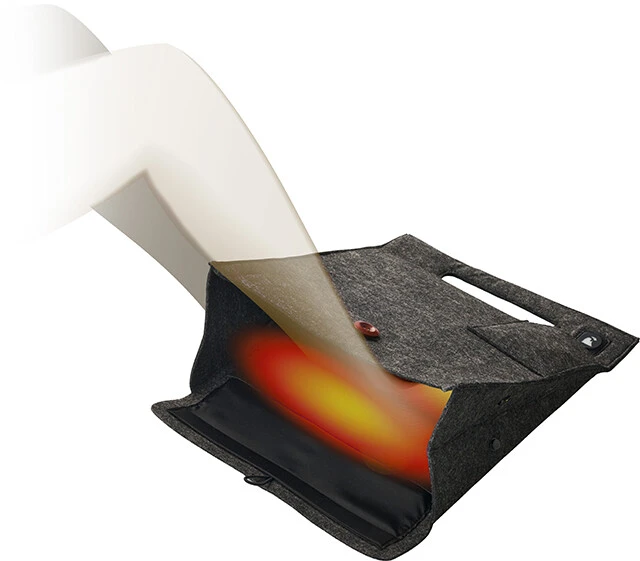 足元用ヒーターはスリッパ型が定番だが、こちらはデザインと携帯性にこだわったアイテム。本体内部にヒーターを内蔵し、モバイルバッテリーやPCのUSB端子からの給電も可能。オフィスでも気軽に使えるモデル。