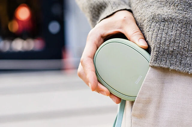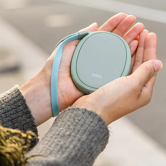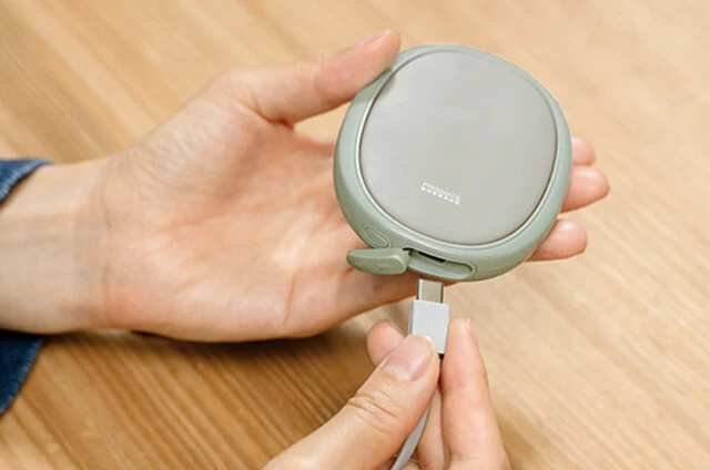 約45~50℃に温まる充電式のポケットカイロ。スマホ用の充電器で充電でき、フル充電すれば最大で約4時間稼働可能。本体重量は約85gで厚さ約17㎜というポケットに入れても気にならないサイズ感。