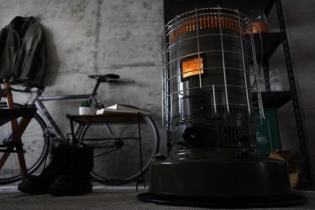 ミリタリーテイストが強めのオリーブグリーンと、アウトドア用品の定番カラー、コヨーテブラウンの2色展開。GEAR MISSIONはタフさとメンテナンス性を追求しつつ、お部屋を素早く温める暖房出力も一般的な石油ストーブの2~3倍という質実剛健な暖房アイテム。木造17畳、コンクリート24畳まで対応。