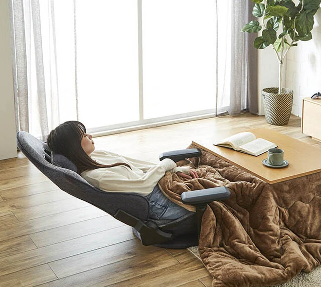 最近はお仕事用のイスとしても定番化したゲーミングチェア。それをローテーブルやコタツでも利用できるよう座椅子化してしまった斬新アイテム。座面は360度回転でき、リクライニング機能も搭載!
