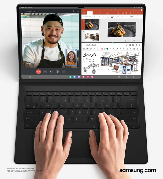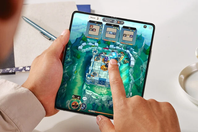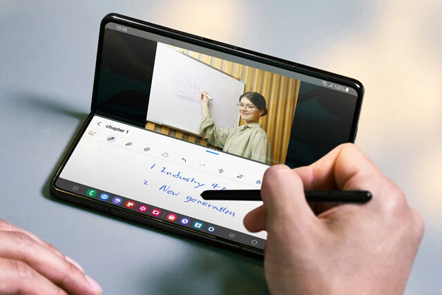 本体を展開すれば約7.6インチのディスプレーが出現! 別売りの「S Pen Fold Edition」でのタッチ入力、マルチタスクなどにも対応して使い勝手はほぼほぼタブレット状態。本体表面には6.2インチのディスプレーも搭載され、閉じた状態では一般的なスマホと同じような感覚で利用できますよ!