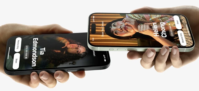写真や動画などをほかのiPhoneユーザーと共有できる機能「AirDrop」。その強化版機能となる「NameDrop」では、iOS 17を搭載した端末を近づけるだけで連絡先の交換が可能。【設定→一般→AirDrop】から【デバイス同士を近づける】にチェックが入っていれば利用でき、「マイカード」も即交換できますよ!