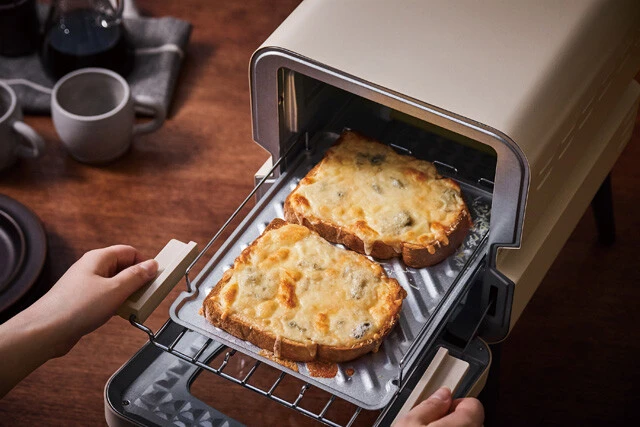 調理家電とは思えない、レトロなテレビのようなデザインが特徴的なトースター。通常のトースト機能だけでなく、冷凍されたパンをカリカリに焼き上げる「冷凍トーストモード」、総菜パンの中身もしっかりと加熱する「デリモード」などなど、日常で活用することの多い機能が大充実。しかも、これらの機能をボタン一発で選択できる簡単操作も魅力です!