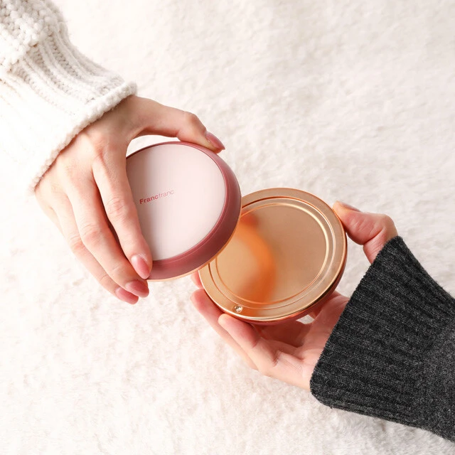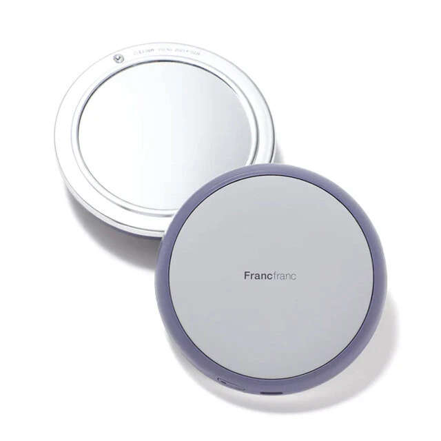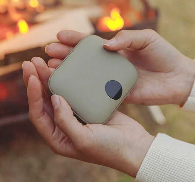 こちらは分割タイプの充電式カイロ。それぞれを上着の両ポケットに入れて利用でき、モバイルバッテリーとしても活用可能。本体にはミラーが搭載され、身だしなみチェックにも使えます。