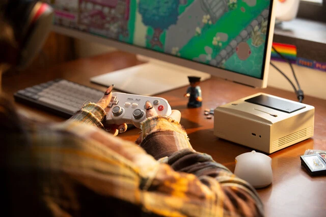 レトロゲーム機や往年の一体型Macintoshを彷彿させるデザインが特徴的なミニPC。本体サイズは奥行き132×幅132×高さ64.5㎜で重量は約486gと、一般的なカバンにもすっぽり収納できるほど。HDMIやUSB Type-C端子が装備され、PC用モニターやテレビに接続して利用することができますよ!
