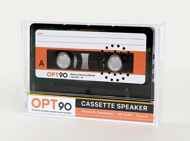 スマホやタブレットと接続して再生でき、さらに本体にMicroSDスロットを搭載しているので単体でも音楽再生や各種操作が可能。本体デザインだけでなく、本物そっくりなカセットケースにも注目です!