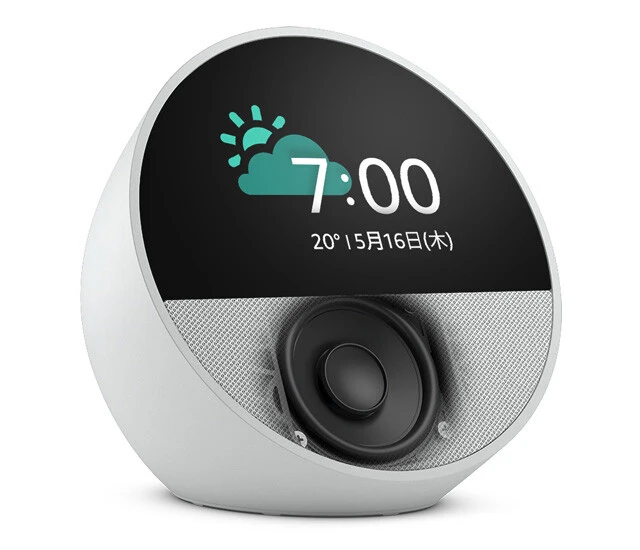 各種デバイスを音声操作できるアマゾンのAI「Alexa」を搭載するスピーカー。タッチ操作に対応するディスプレーには時刻、天気、再生中の楽曲名などを表示可能。本体は小型ながらも低音はしっかり、ボーカルはクリアに再生。もちろん、スマホやタブレットの音源を再生することもできますよ!