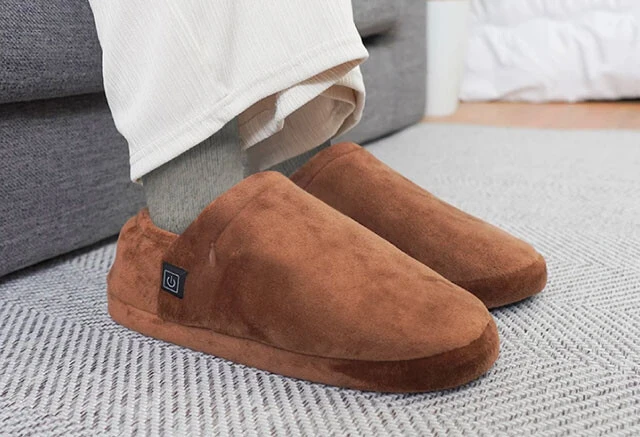 ヒーター内蔵で足がいつでも温かい電気スリッパ。本体は洗濯可能なのもうれしい。コタツと同じで、寒い冬の間は一度履いたらもう脱げない......! スリッパ本体4980円(バッテリー別売り)