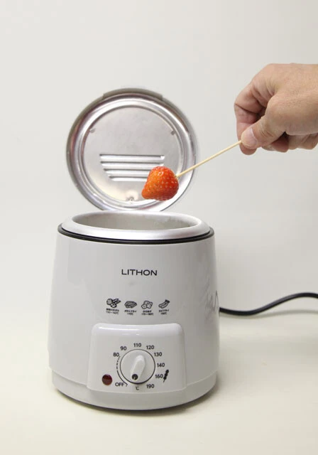 水と砂糖を投入し、加温してできた「あめ」をフルーツにかければ屋台スイーツの出来上がり!(レシピ付き)。さらにドーナツや唐揚げなどの揚げ物を手軽に作れるフライヤー機能も。3300円