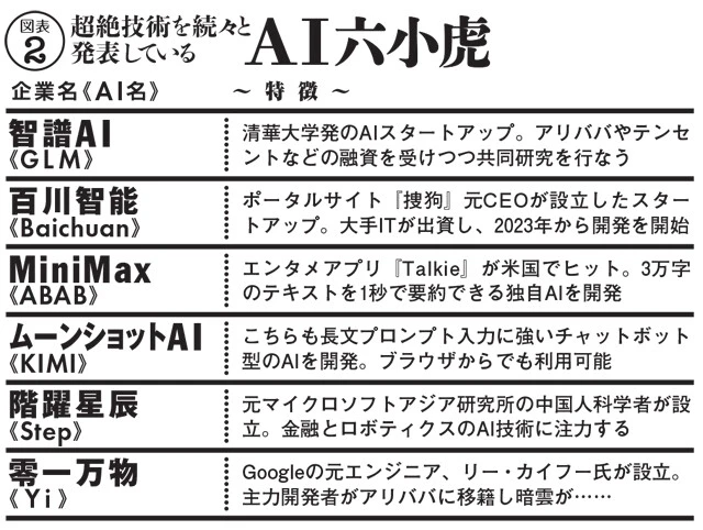 その多くはオープンAIやグーグルなどの米企業で働いているが、中国に残る人材もつわものぞろい。米中AI競争の真実は、〝米企業の中国人対中国企業の中国人〟というジョークもあるほど。圧倒的な人材の数が優れたAIを生み出している。