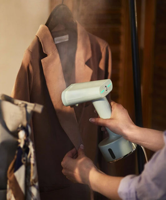 帰宅直後に気になるのが、衣類に付着した花粉。こちらはスチームで衣類に付着した花粉の飛散を抑えつつ、たばこ臭や焼き肉臭などへの消臭効果もあり。衣類の除菌から脱臭、さらにシワ伸ばしまで、消臭スプレー感覚でプシュ~と簡単に使えるのが魅力!