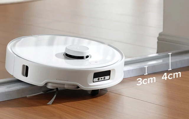 本製品は吸い込みだけでなく、床にたまった花粉の飛散防止につながる水拭きにも対応。最大4㎝までの段差を乗り越えられ、部屋のコーナー部分や壁際もきっちり清掃。ゴミの収集、水拭きモップの洗浄・乾燥を行なう全自動のドックは、紙パック式を採用し花粉を外に漏らさずしっかり密閉!
