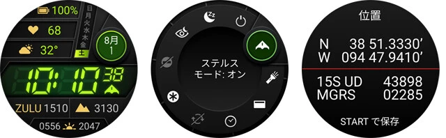 アメリカ国防総省の定める耐熱・耐衝撃・耐水の基準であるMIL-STD-810規格をクリアするタフネスモデル。位置情報の保存や共有など使いやすく正確なGPS性能、LEDフラッシュライト、有料で弾道計算機能を搭載するといったガチガチのミリタリースペックも大充実!