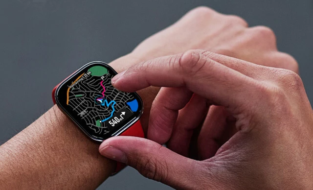 大型の1.97インチAMOLEDディスプレーを搭載し、本体の画面で各種管理情報を確認しやすいのが特徴。オフラインでも道案内を利用できる「オフラインマップ機能」が搭載され、ルート確認も大画面で快適。最大で26日も使用できるバッテリー性能も注目!
