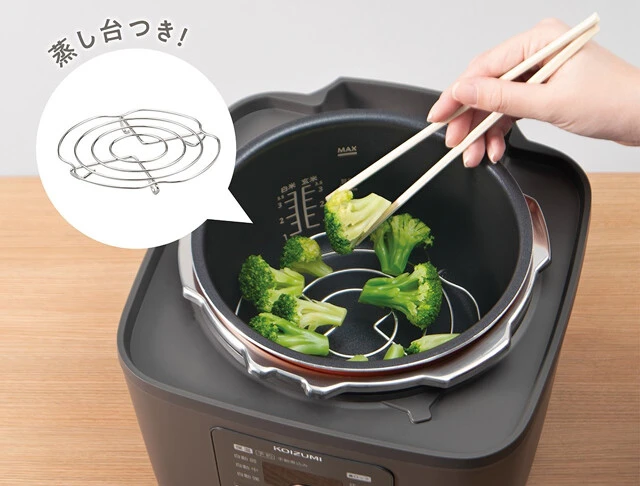 お肉や野菜、調味料などを入れ、ボタンを押すだけで調理が完了。カレーやシチュー、豚の角煮なども作れ、ほったらかし調理で人気の電気圧力鍋。各種調理だけでなく、炊飯にも使えますよ!
