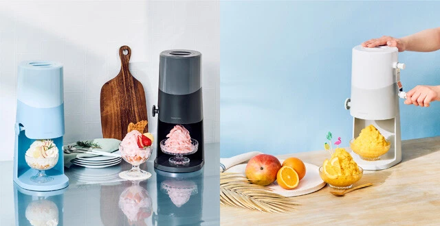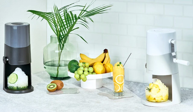 2016年に発売され、累計の販売台数は100万台を超えるメガヒットシリーズ。デザインがフルリニューアルされ、コンパクトに収納することが可能。氷や冷凍したジュースやフルーツなどを素材にして、専門店のような"ふわふわ"食感のかき氷が完成。お値段が控えめの手動モデルも新登場!