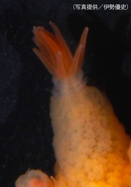 触手(写真上方)を伸ばすウミノフジサン。その様子はさながら富士山の噴火のよう!