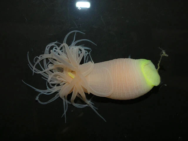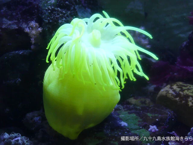基本的に海底にくっついてる小さな花みたいな生き物で、触手と、そこにある毒針が特徴。触手でエサを捕らえて全身の大半を占める胃で消化するんだけど、なんとケツの穴がないから、ウンチを口から吐き出すファンキーな連中でもある。