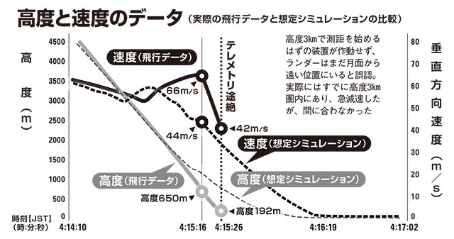 ところが、今回はランダーに搭載された2基のLRFがいずれも事前に想定されていた高度3㎞で機能しなかったため、減速が間に合わなくなってしまった。
